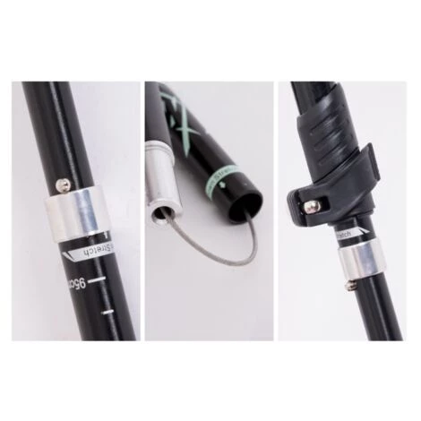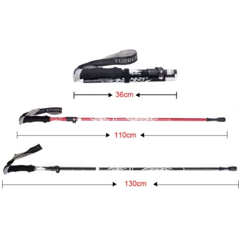 Matériau : alliage d’aluminium, extrêmement léger et stable ; chaque bâton ne pèse que 250 grammes et la longueur est réglable de 95 à 110 cm.