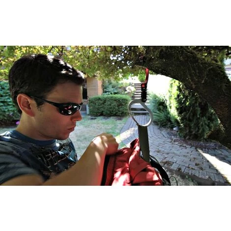 Polyvalent : accrochez n’importe où : branches d’arbres, portes, poignées de valise, tables, clôtures, poussettes, caddies, étagères de garage. « Le mousqueton le plus utile au monde »