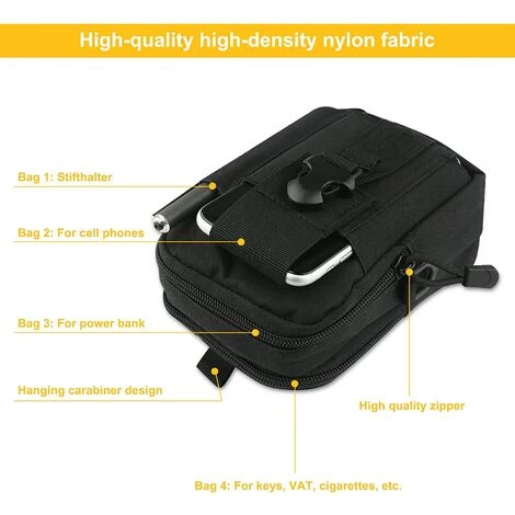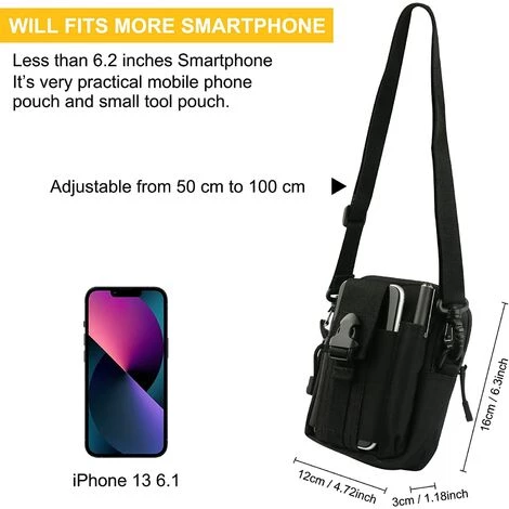 Conçu comme un sac de ceinture, il peut être utilisé comme un petit sac à outils ou un sac de ceinture utilitaire. Parfait pour ranger les téléphones (taille d’écran jusqu’à 6,0″), les porte-clés, les appareils GPS, les appareils photo numériques, les fournitures médicales, les petits outils ou tout ce dont vous avez besoin.
