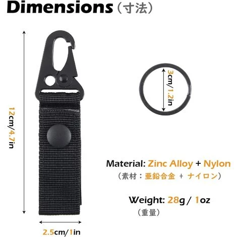 PORTE-CLÉ – Le porte-clés sur le crochet peut être utilisé pour accrocher des clés, des bouteilles d’eau, des lampes de poche, des boussoles, un sifflet, etc.