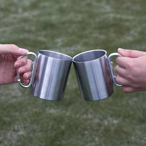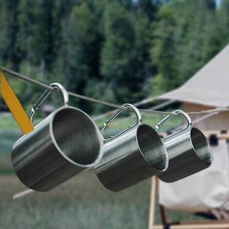 Tasse pour l’extérieur, en acier inoxydable résistant, avec poignée à mousqueton vissée, pour la randonnée, le voyage, l’escalade, l’alpinisme, le trekking et le travail.