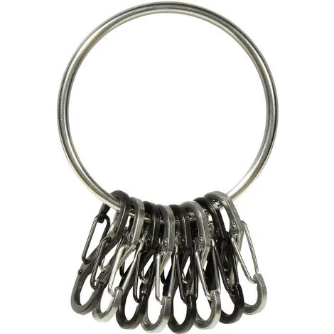 Pour toutes les personnes transportant toujours plus de clés. Avec anneau robuste inoxydable. Avec 8 S-Biner en acier inoxydable. Disponible en deux couleurs : noir et argent. Organisation des clés en un clin d’oeil. Les mousquetons S-Binet peuvent être fixés simplement sur une ceinture, fermeture éclair…