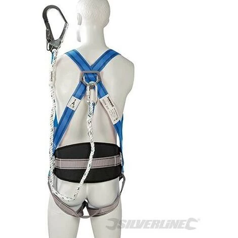 Harnais et longe de retenue et maintien en polyester avec crochet d’échafaudeur et mousqueton en alliage d’acier. Conforme aux normes EN 361, EN 362 et EN 358. Fourni avec un sac de rangement.