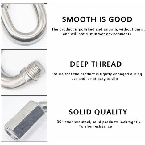 DIMENSION – Longueur: 74 mm; Largeur: 18 mm; Diamètre: 7,83 mm; Poids: 0,08 g; Tenir le poids: 500 kg.AVERTISSEMENT: NON applicable pour l’escalade.