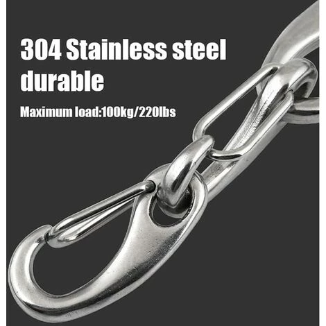 MatĂ©riau : ce mousqueton est fabriquĂ© Ă partir du meilleur matĂ©riau en acier inoxydable 304, qui est rĂ©sistant Ă la corrosion, pas facile Ă rouiller, solide et durable, avec une forte capacitĂ© de charge, jusqu’Ă 100 kg.