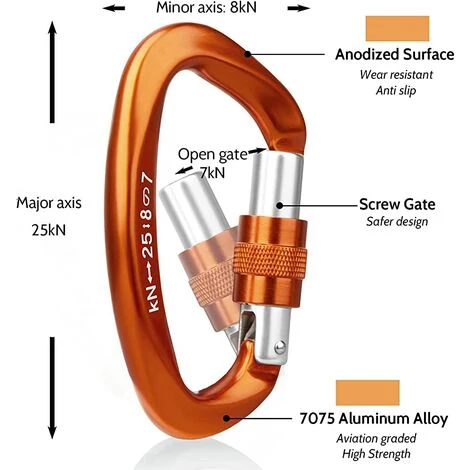 Mousqueton de qualit professionnelle. Il est trs appropri pour fixer des points d’ancrage et une protection contre la descente l’escalade.
