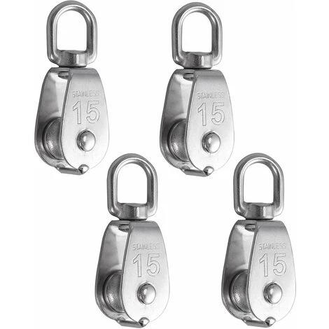 【Anneau Pivotant à 360 Degrés】4 pièces M15 bloc de poulie simple avec roue tournante lisse, rotation à 360 degrés pour empêcher la corde / câble / fil de se nouer pour votre utilisation pratique.