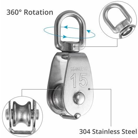 【Matériau de Qualité Supérieure】Rouleau à poulie unique en acier inoxydable 304, très robuste, antirouille, résistant à l’usure et à la corrosion avec une structure très solide.