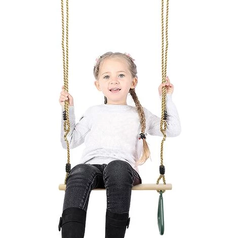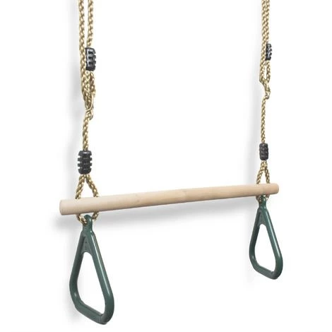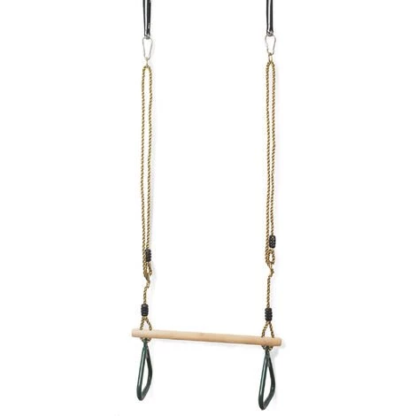 Offrez des heures de jeu actif à votre enfant avec cet ensemble trapézoïdal et anneaux de qualité supérieure. Sécurisez facilement cet ensemble sur nimporte quel cadre descalade ou de balançoire avec des verrous solides et sécurisés pour mousqueton. Regardez votre enfant exprimer son talent dartiste de cirque ou gymnaste, tout en développant sa force et sa coordination. Fabriquée en bois dur traité, le trapèze est sans éclat et durable. Les cordes élastiques sont en polyéthylène pour réduire les frictions et les risques de brûlure. Fabriqués en plastique moulé résistant aux intempéries, les anneaux robustes assurent une prise en main sûre.