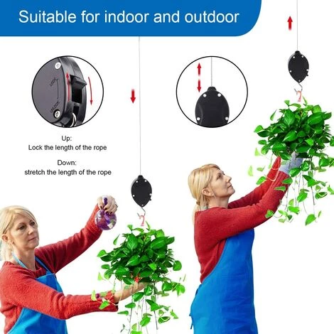 -Avec un crochet de suspension de poulie, vous n’avez plus besoin de grimper sur une échelle ou un tabouret, vous pouvez facilement arroser ou entretenir. Plantez des fleurs et des plantes – c’est