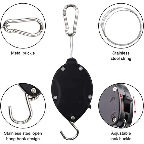 Interrupteur réglable: le crochet pour pot de fleur est facile à utiliser. Lorsque l’interrupteur est à gauche, la corde peut être ajustée; lorsque l’interrupteur est à droite, la corde sera fixée. Vous pouvez facilement ajuster la position de suspension en fonction de vos besoins