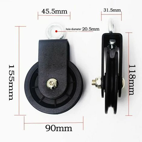 Dimension¡¿ Longueur tota: 155mm / 6,1¡±, large: 90 mm / 3,5¡±; suppo: 95 * 45,5 * 31,5mm / 3,7 * 1,8 * 1,2¡±; diamtre du trou suprie: 20,5mm / 0,8¡±. Le bloc de poulie pivotant est con?u pour suspendre des objets de poids afin allger la charge.