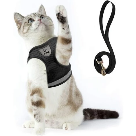 Harnais pour chat Harnais gilet en maille souple Harnais réglable pour animaux de compagnie avec clip de laisse et sangle réfléchissante pour chaton chiot lapin