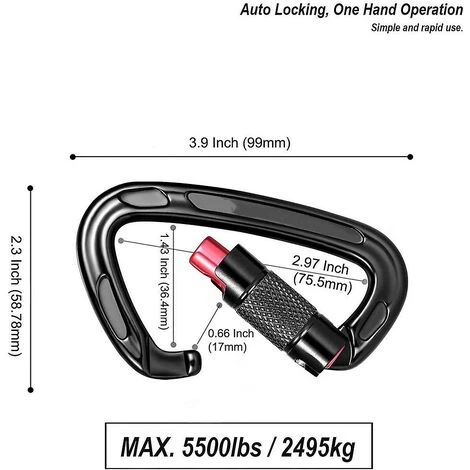 Durable et durable – Antirouille dans toutes les conditions, charges lourdes jusqu’à 1224 kg, assez solide et durable pour une utilisation pendant plus de 10 ans Comparé au mousqueton de porte, il est plus sécurisé avec une serrure ; Comparé au mousqueton à vis, il est autobloquant et rapide, pas besoin de visser de haut en bas SURFACE FINIE LISSE – Pas de pièces tranchantes, sûr et fiable à utiliser à tout moment UTILISATION MULTIPLE – Utilisation pondérée comme hamac, balançoire de yoga, sécurisé chiens adultes, sac de boxe suspendu; Utilisation quotidienne : clés, sac à dos, bouteille d’eau, matériel de camping, chasse, pêche en kayak, outils suspendus, etc. Détails du produit Fabriqués en aluminium 7075, ces mousquetons à verrouillage automatique sont plus légers que l’acier. Il fonctionne pour des utilisations moyennes. Il y a moins de forces et de charges de fonctionnement. Il est plus léger que les mousquetons en acier en raison de leur matériau. Cela signifie que vous avez moins de poids à porter pendant vos activités. Lester Hauteur : 9,93 cm, largeur : 5,94 cm, taille d’ouverture : 1,6 cm. réduire la charge de transport au minimum. Le composant vital est souvent appelé l’axe central au milieu du virage rapide. C’est la région qui peut supporter le plus de poids. Conception et forme Construit avec une colonne vertébrale incurvée, il déplace la force vers la colonne vertébrale du mousqueton à verrouillage loin de la porte droite. Pour cette raison, c’est la forme de mousqueton la plus solide. Et il est plus polyvalent qu’un design ovale symétrique traditionnel. Ils sont conçus pour protéger contre les accrocs avec une colonne vertébrale profonde et des protège-nez verrouillables. L’interface a une conception facile à utiliser qui est agréable à transporter et à gérer. Avec la configuration à ressort, la porte se ferme et se verrouille automatiquement, ce qui la rend facile à clipser et à reverrouiller pour sécuriser. Tous les mousquetons sont sujets à l’usure, alors inspectez-les avant utilisation. Caractéristiques du mousqueton Il se compose d’une ouverture à portée de main pour faire tourner le canon. L’utilisateur peut utiliser l’index et le pouce pour ouvrir la porte, qui comporte un nez de verrouillage. Vous relâchez la pression des portes pour que le ressort de barillet ferme la porte. Après verrouillage automatique du canon pour le sécuriser. Durabilité Le mousqueton à verrouillage reste exempt de rouille dans toutes les conditions. Il est fiable, a une excellente stabilité et est suffisamment durable pour être utilisé pendant dix ans. Nos mousquetons ont une surface lisse et un fonctionnement de verrouillage. La structure et la forme peuvent empêcher les rayures ou les rayures. Couleur : noir Quantité vendue : 2 pièces À propos de l’aberration chromatique : les marchandises vendues sont toutes prises en nature, mais en raison de différents éclairages, moniteurs, etc., il y aura une petite différence de couleur, ce qui est un phénomène normal, pas une qualité. problème A propos de la taille : Les dimensions des produits vendus sont toutes mesurées manuellement. En raison de différentes méthodes et outils de mesure, il peut y avoir une erreur de 1 à 2 mm, ce qui est normal